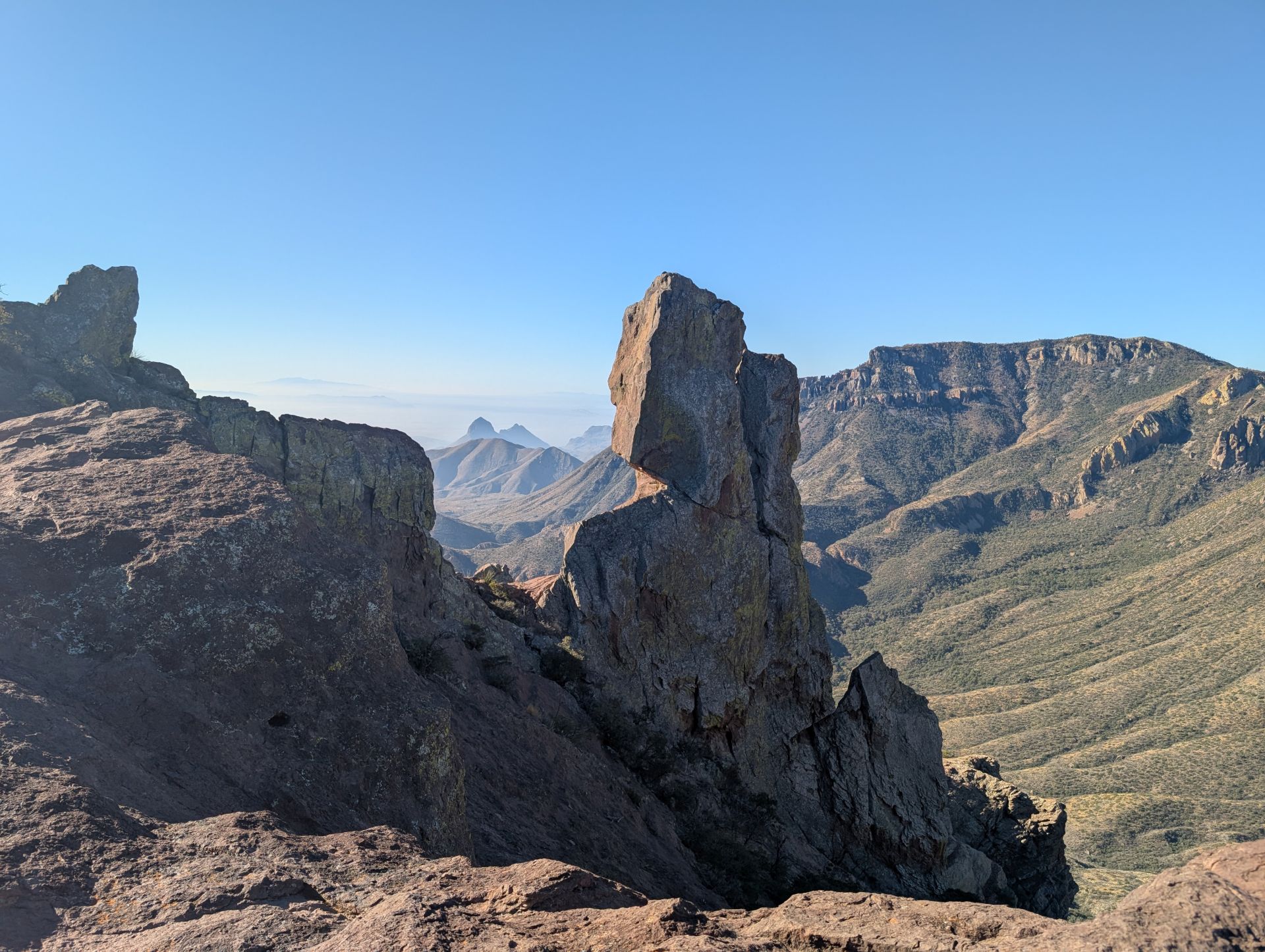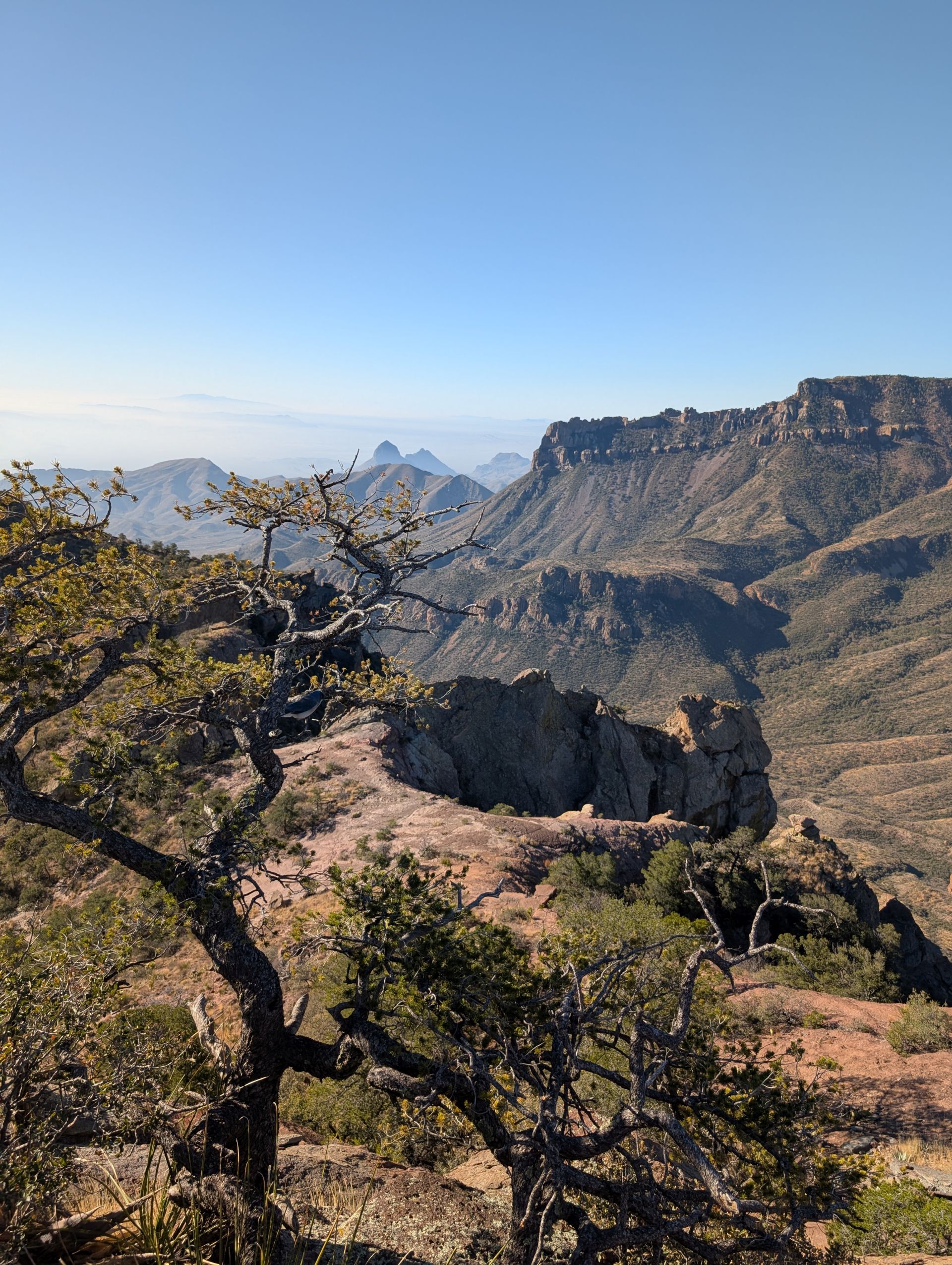 Our first serious hike. Got up at 6:30 to find a spot at the popular, but small, Lost Mine Trail trailhead parking lot. We were rewarded with amazing weather and amazing views.